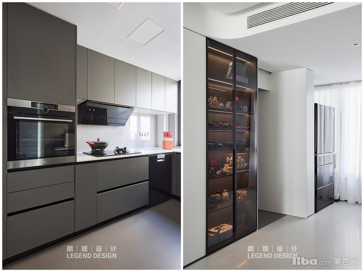 U型布局的厨房将空间最大化利用,提升烹饪时使用的舒适度。厨房入口处,有整面墙的储物柜可以放置和陈列两个孩子的玩具。