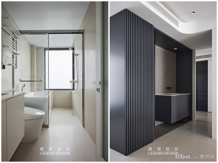 重新设计的干湿分离,提升使用体验。干区的墙面与柜体色彩反差,让小区域空间凸显立体感,又与整体完美融合。
