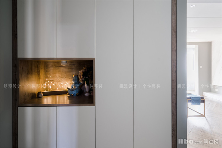 衣帽间与主卧形成套房,但衣帽间采用柜门,整体看上去储藏空间多而不乱。