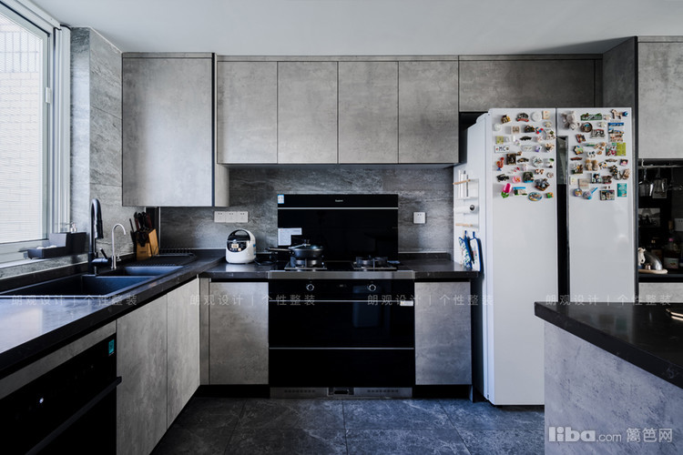 开放式厨房更显空间宽敞,同时U型橱柜增加了储藏空间。