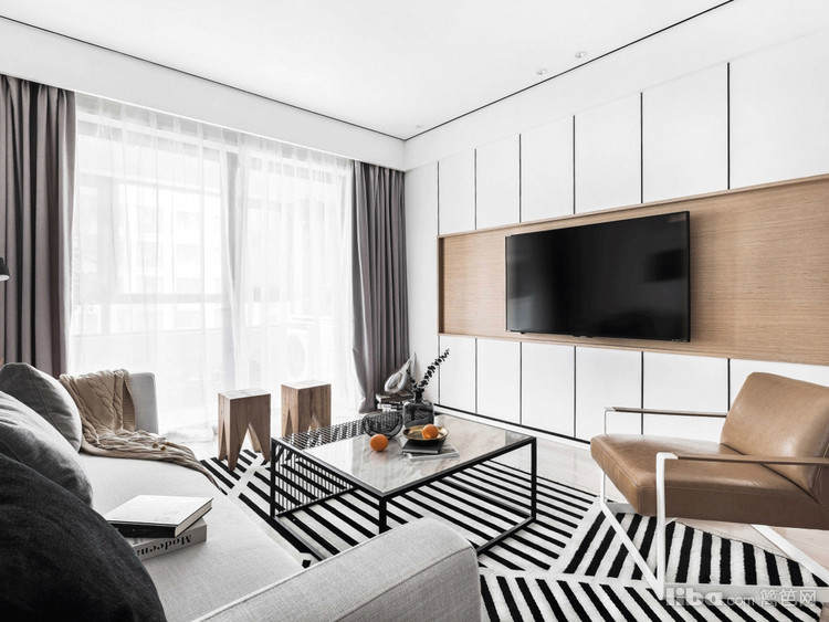 同样以白色为主色调,黑色线条做点缀,配上地面的几何花纹,时尚且酷。