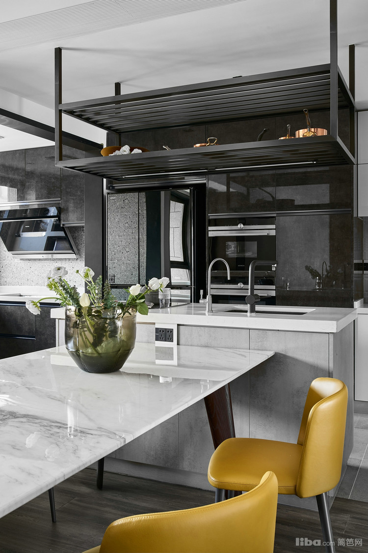 整个设计的重点是餐厅区域,作为一日三餐的产生地—厨房,总是被与生活、亲情、友情联系在一起,成为了一个家庭的温度所在。
