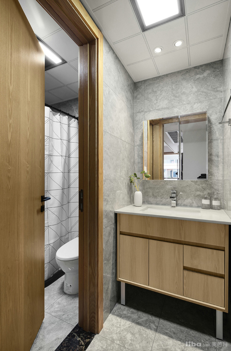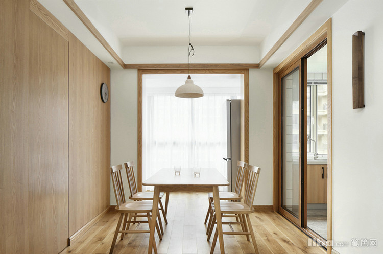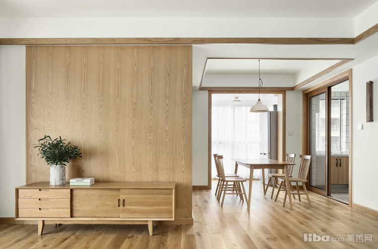 大面积运用原木色营造空间上宁静温暖的感觉,简单的直线吊顶搭配原木色线条使整个空间更加立体。