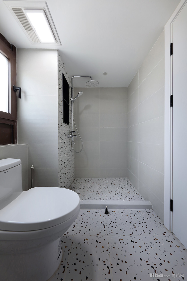 对于面积很小的卫生间,建议选择浴帘作为干湿分离,洗澡的时候拉起浴帘挡水,平时打开浴帘保持空间的宽阔。