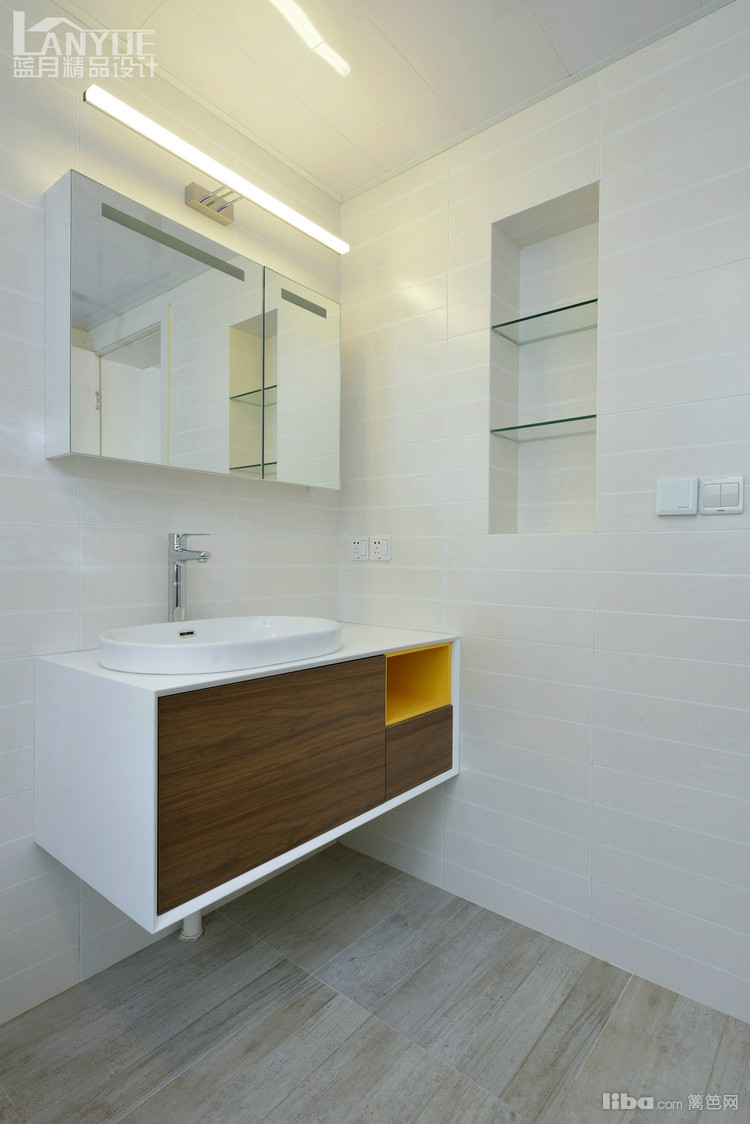 卫生间以极简为主,搭配简约款台盆组合柜。