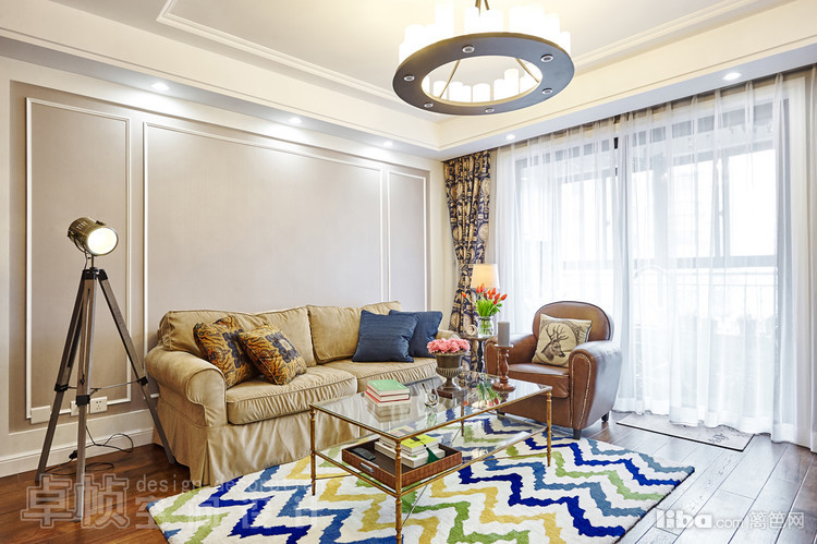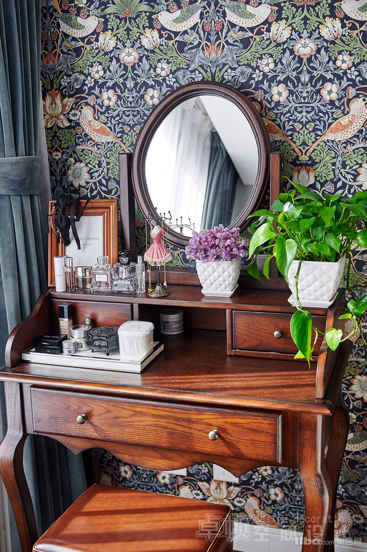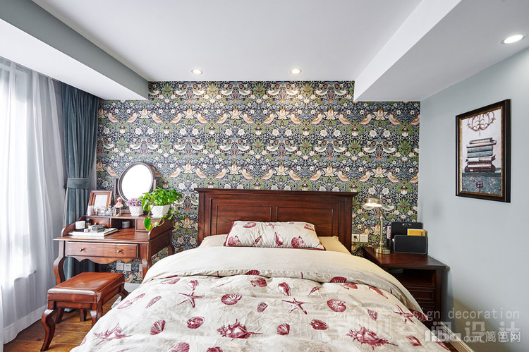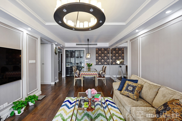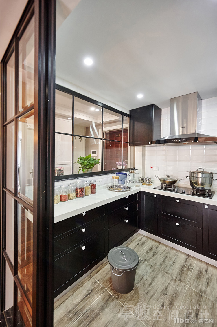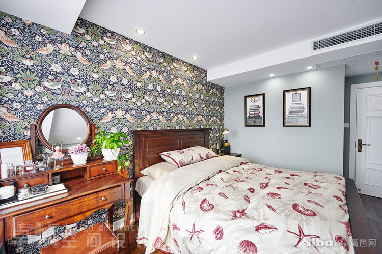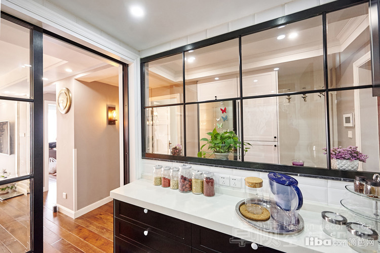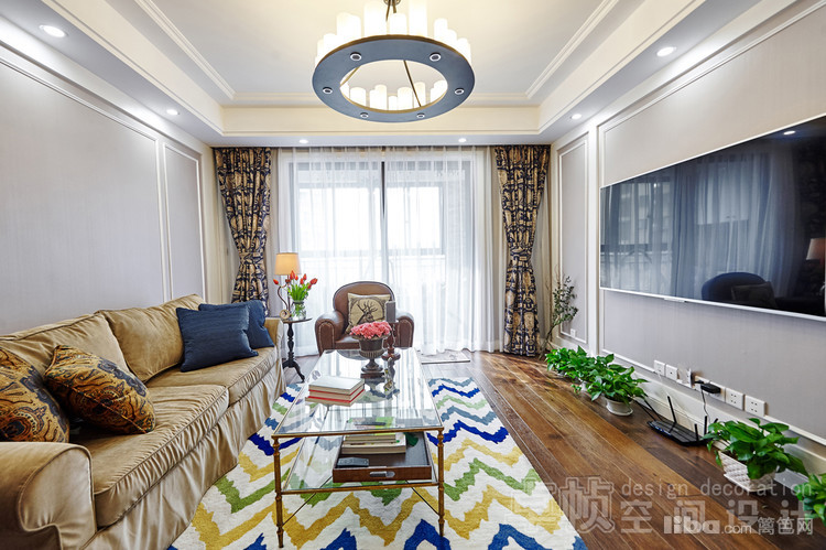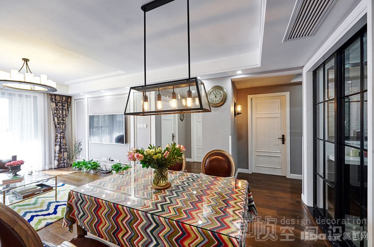 公共区域美式的硬装结合法式的软装;厨房敲掉多余的墙体使空间更通透;卧室采用简单的装饰面和传统美式家具