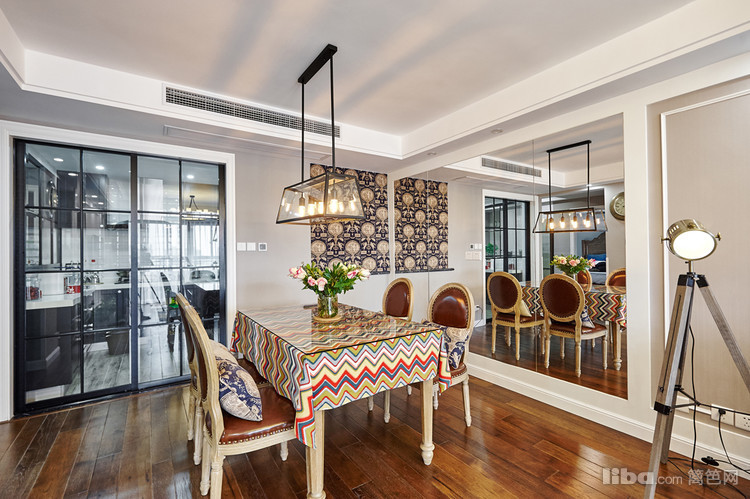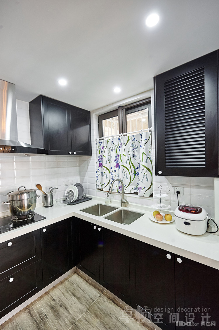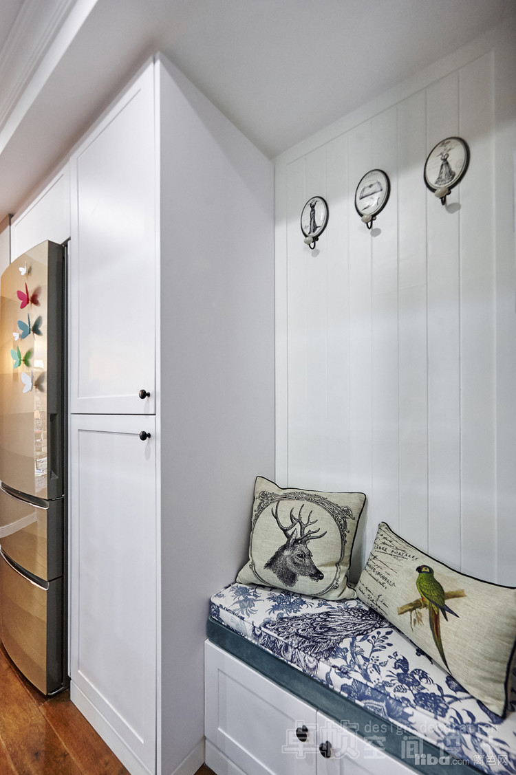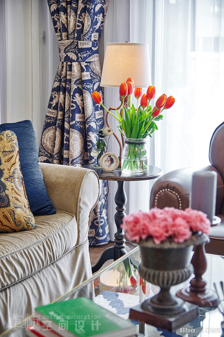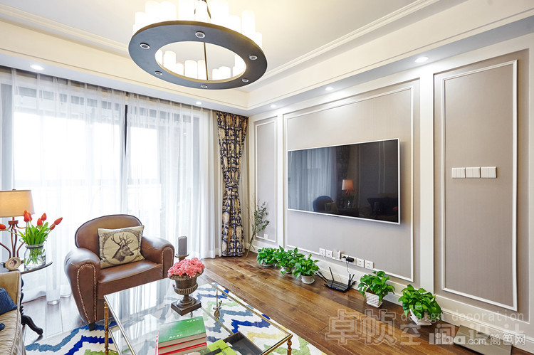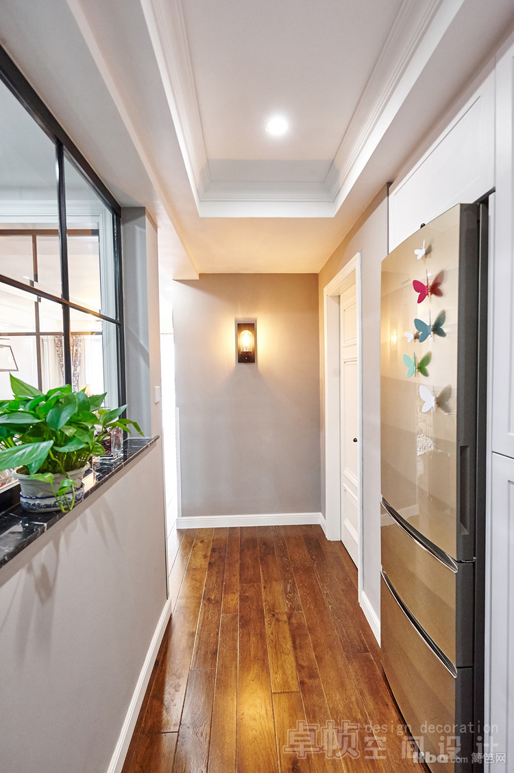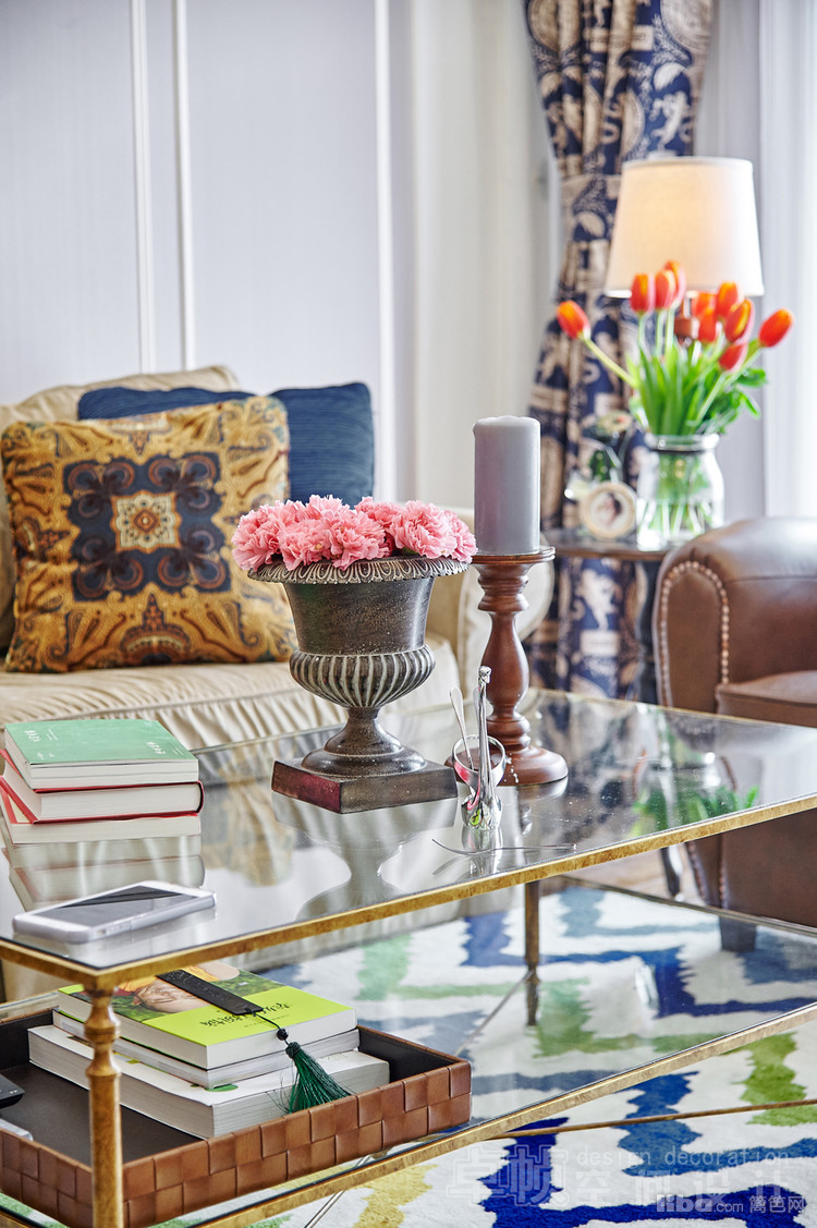 公共区域美式的硬装结合法式的软装;厨房敲掉多余的墙体使空间更通透;卧室采用简单的装饰面和传统美式家具