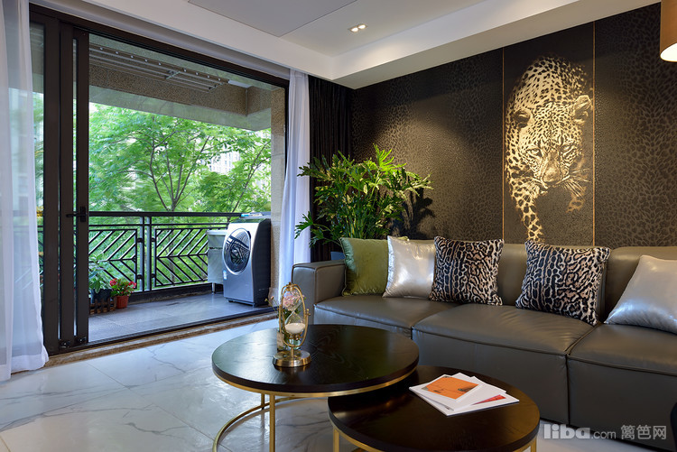 客厅背景墙豹子是本案吸晴重点,打破常规传统客厅的呆板设计让人眼前一亮。让整个空间活络起来。皮质沙发给空间带来质感。
