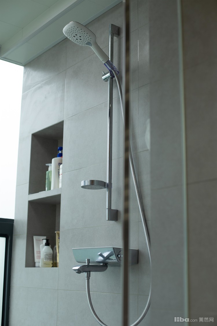 卫生间划分成了三个区域,盥洗区/马桶区/淋浴区,卫生间的面积是非常大。因为合并了原来阳台的位置,在淋浴区和马桶区之间砌了一道隔墙作为空间区分。