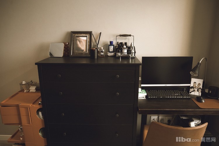 沙发倚靠矮柜,这里放置一些平时经常喜欢翻阅的书、唱片,没事看看书听听音乐窝在沙发可以惬意待上一整天。