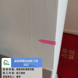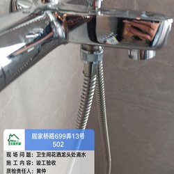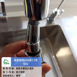 今日现场竣工验收,存在以下问题:1.墙、顶面涂料多处不光滑、流坠、破损;2.厨房水槽龙头滴水;3.冲淋房花洒龙头连接处渗水;4.南阳台地漏内有泡沫、且倒反水。