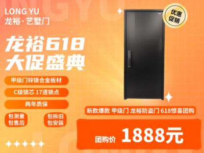 【篱笆618建材大促】龙裕艺墅门品牌专场团购,甲级门+C级锁=1?99/樘起