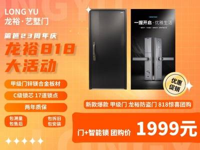 【篱笆23周年 818建材大促】龙裕艺墅门品牌专场团购,甲级门+C级锁=1?99/樘起