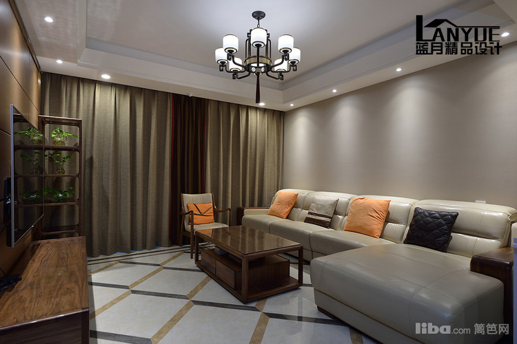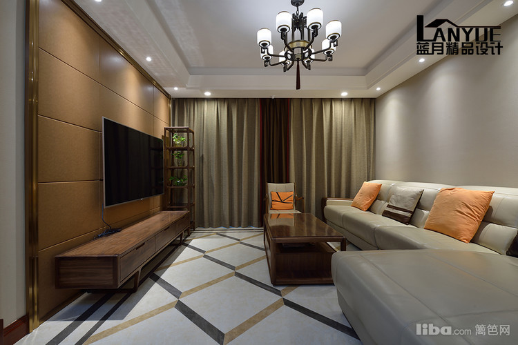 客厅整个地砖也采用拼贴形式,与茶几的颜色相得益彰。