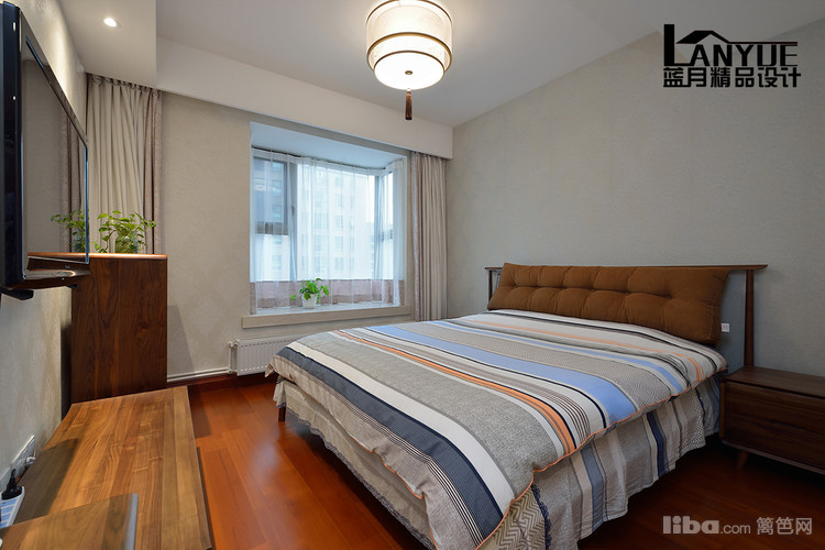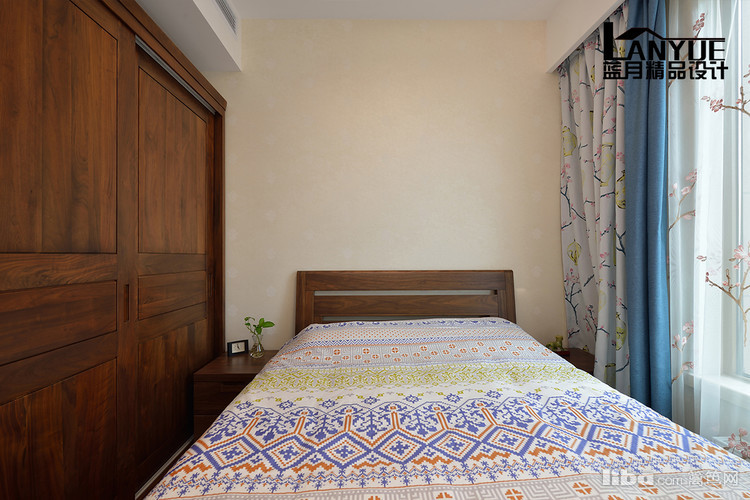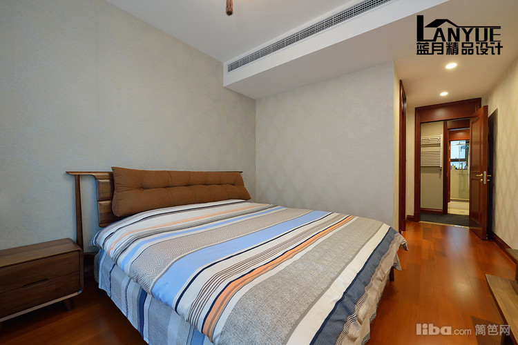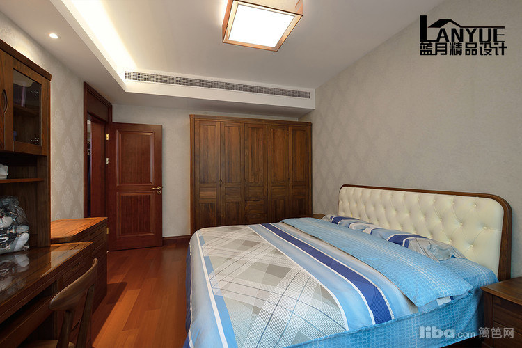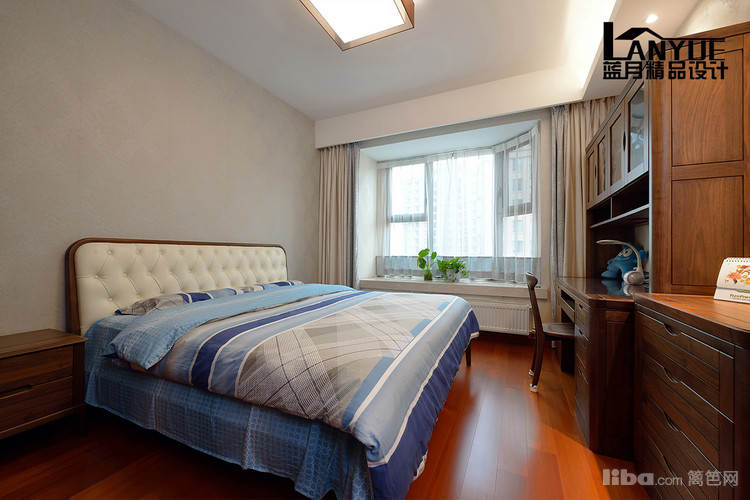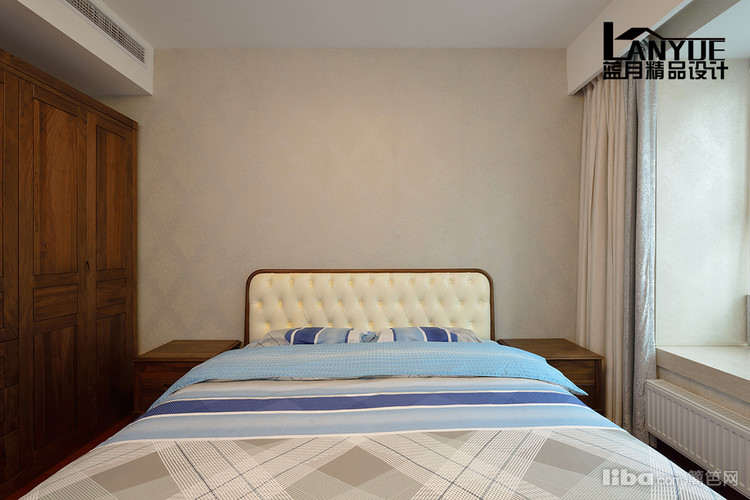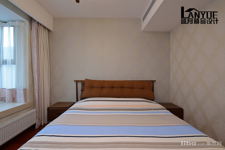卧室的床和床头柜也是选用了胡桃木为基调的颜色。