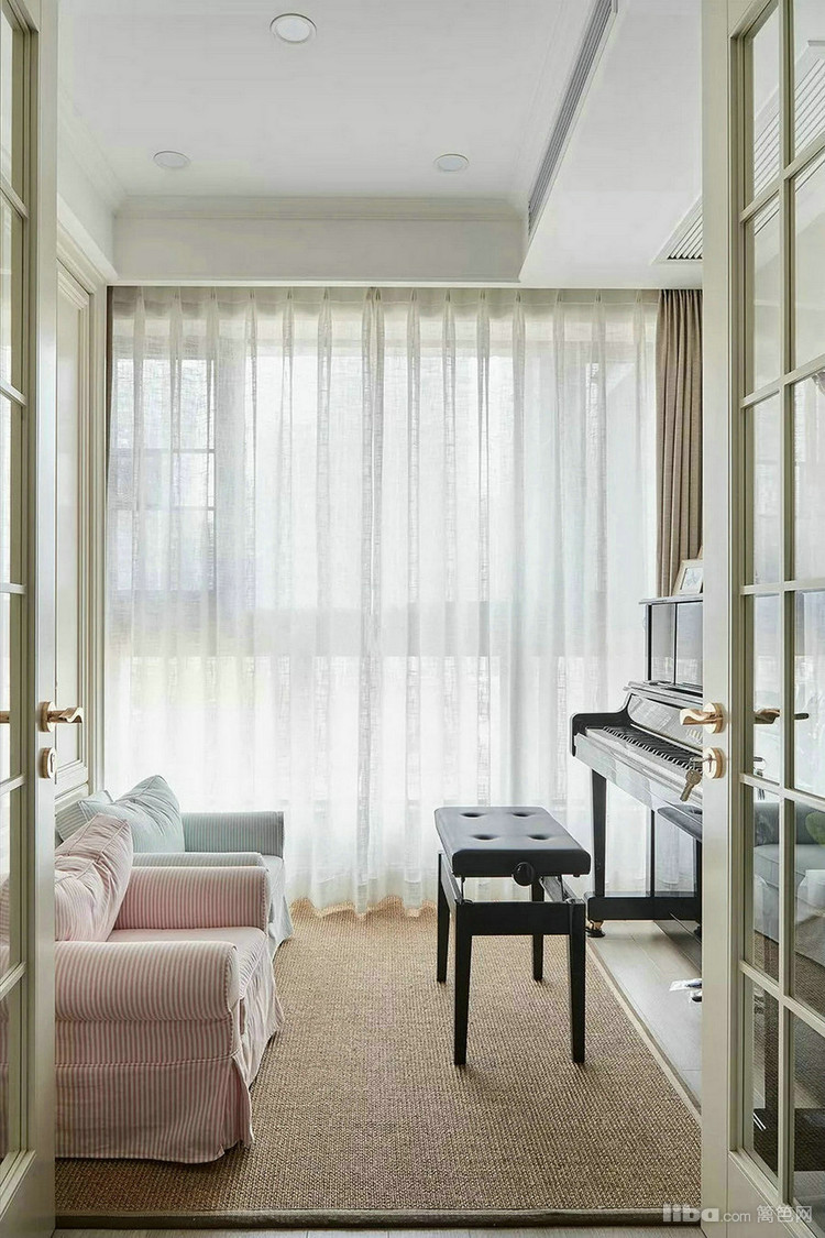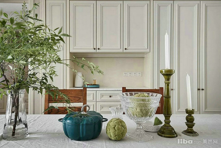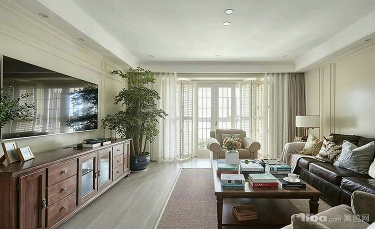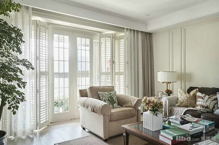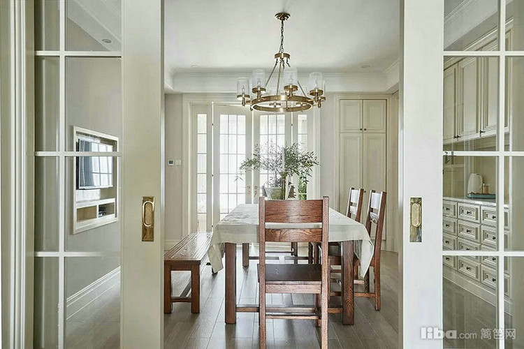 室多白色,则使人心境澄澈明朗,心情愉悦;客厅遵循了现代美式在色彩上的精简,却选用了传统美式风格的家具摆设,两相交融,传达出空间的自然灵气。