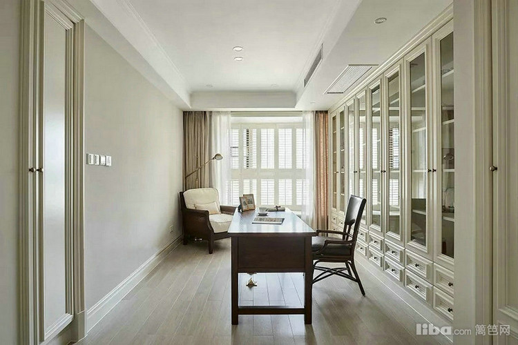 这是特意为男主人打造的集工作、储物、休闲为一体的私人空间,优雅温润,端庄大气。