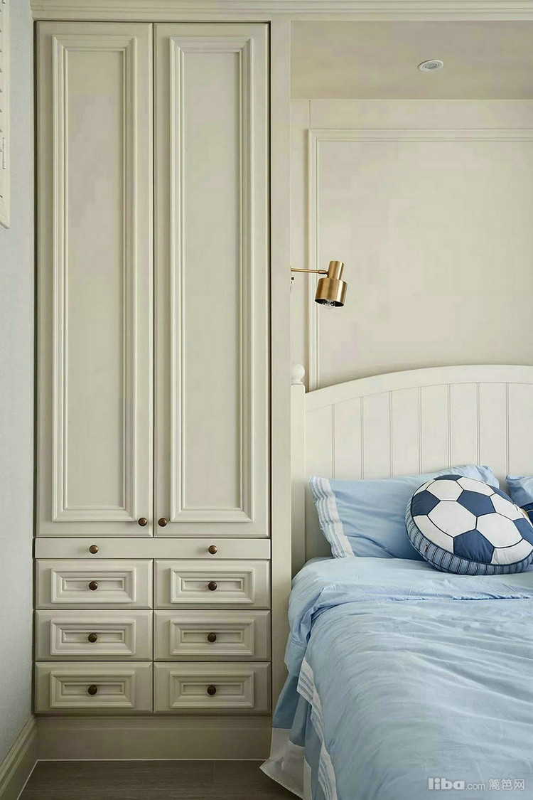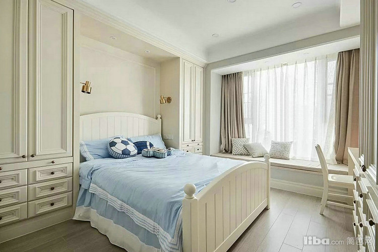 雅致悦目的色调,给人带来直抵心灵的舒适品质感;床头柜和沙发的选择庄重沉稳,在色彩上,作为辅色调节过渡空间层次,丰富空间的视觉性