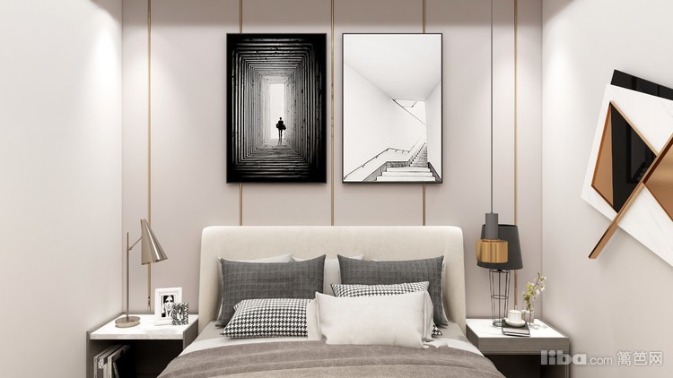 简单的线条,简约的挂画体现出卧室该有的现代宁静之美