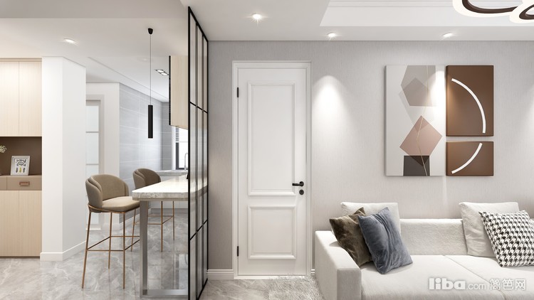 客厅只有一扇小的窗户,采光较弱,因此整体墙面和家具都以白色为主,这样不仅在视觉上增大了客厅面积,也会加强客厅的明度