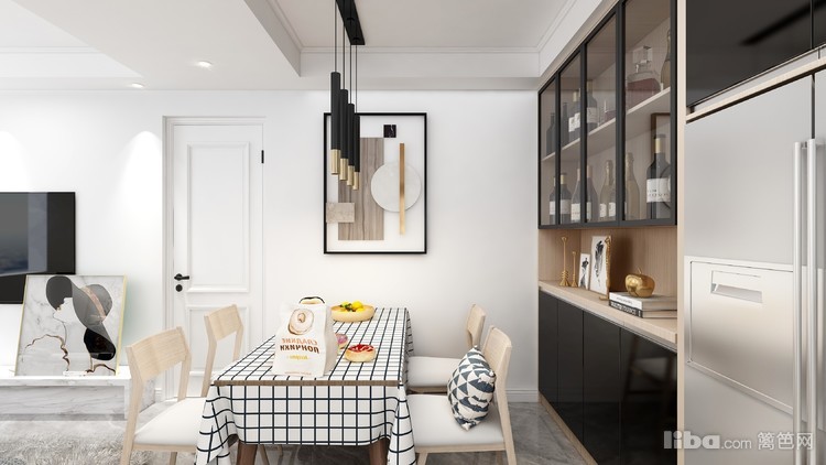 餐厅分为就餐区和吧台区,吧台链接厨房增大实用空间