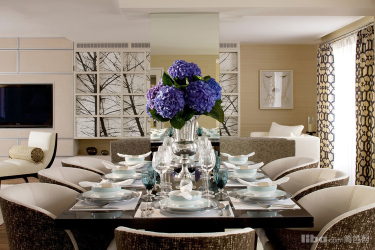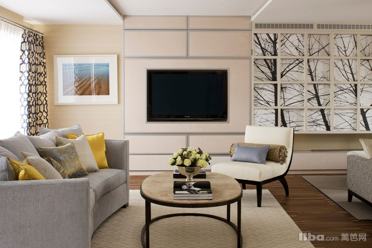 电视背景墙植入中国风的风景画“树”,进一步丰富空间的色彩。