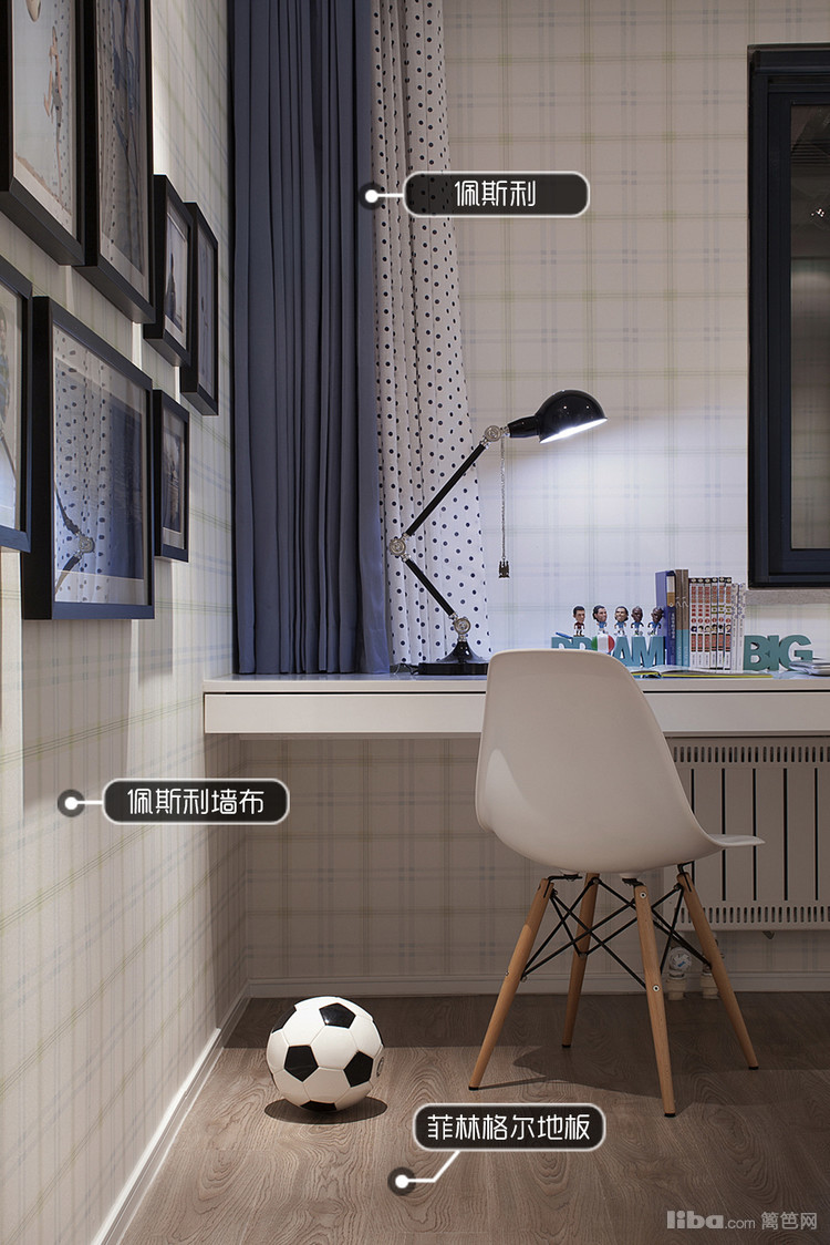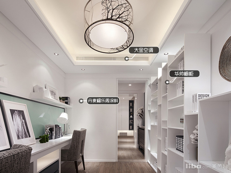 书房整体用纯白色点缀,做了一张可以拜访书籍的靠墙柜,可以充分的放置一些书籍。书柜的正对面则定制了一台书桌。