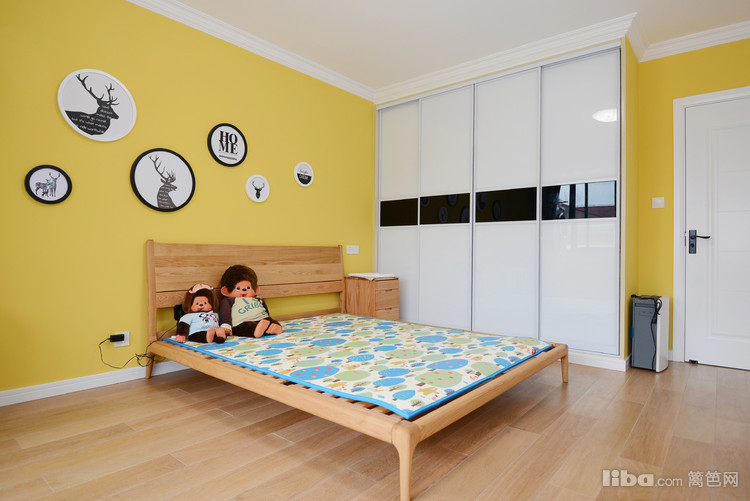 整体配色是根据北欧+现代的混搭去配合简约的空间 用简单环保的材料 主色调为 黑白黄 再用小饰品或者植物书籍点缀局部的颜色