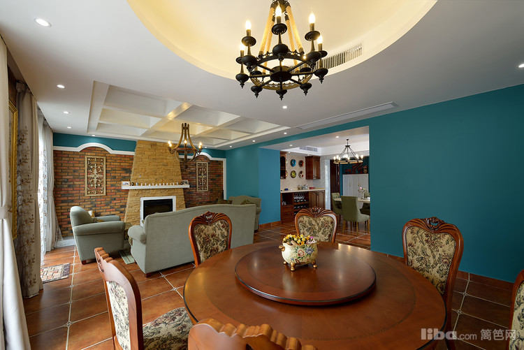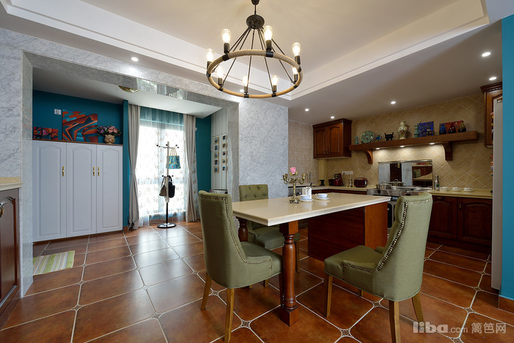 美式乡村风格的色彩以自然色调为主,绿色、土褐色最为常见。在色彩上的运用是淡雅、柔和、协调的色调。