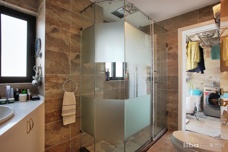 卫生间由于之前的门正对大门,因此改成了斜门,整体 感觉优雅,简单,用最少的设计元素,带来最多的精致与奢华