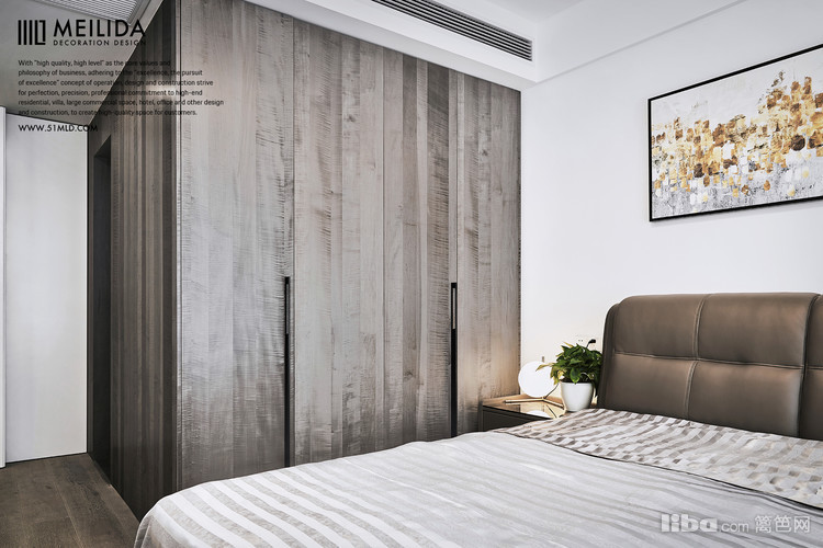 床头上艺术画给空间带来了延伸感,