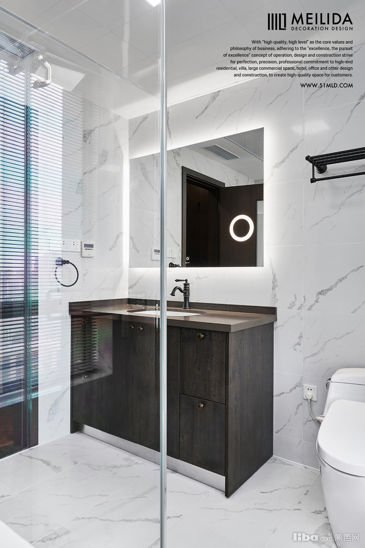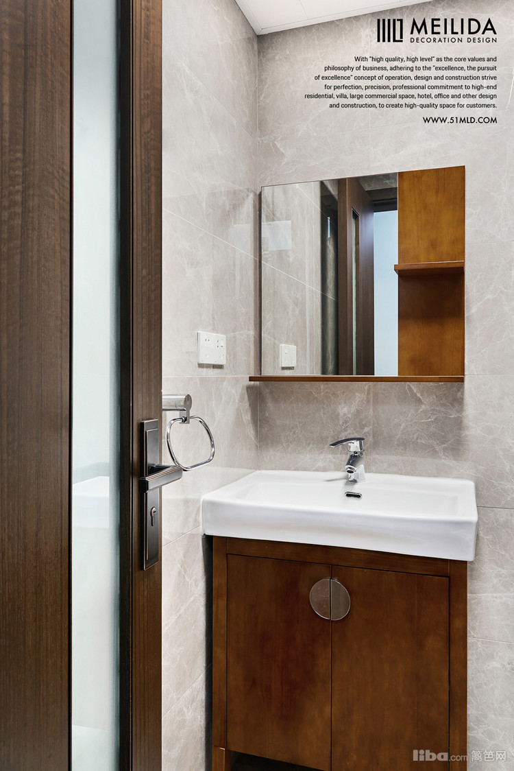 镜子简单的造型与整体的素雅完美的融合在一起。