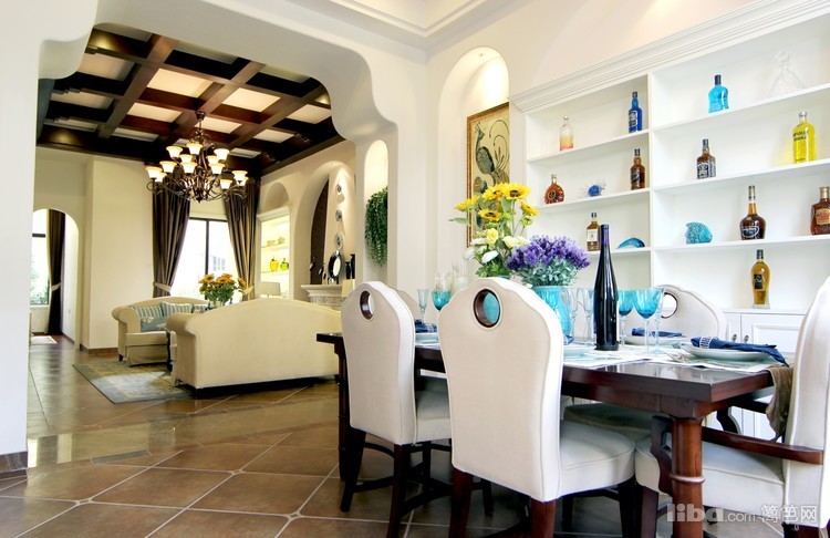 木质的餐桌搭配以白色布艺餐椅,和整体的色调非常和谐又不失稳重