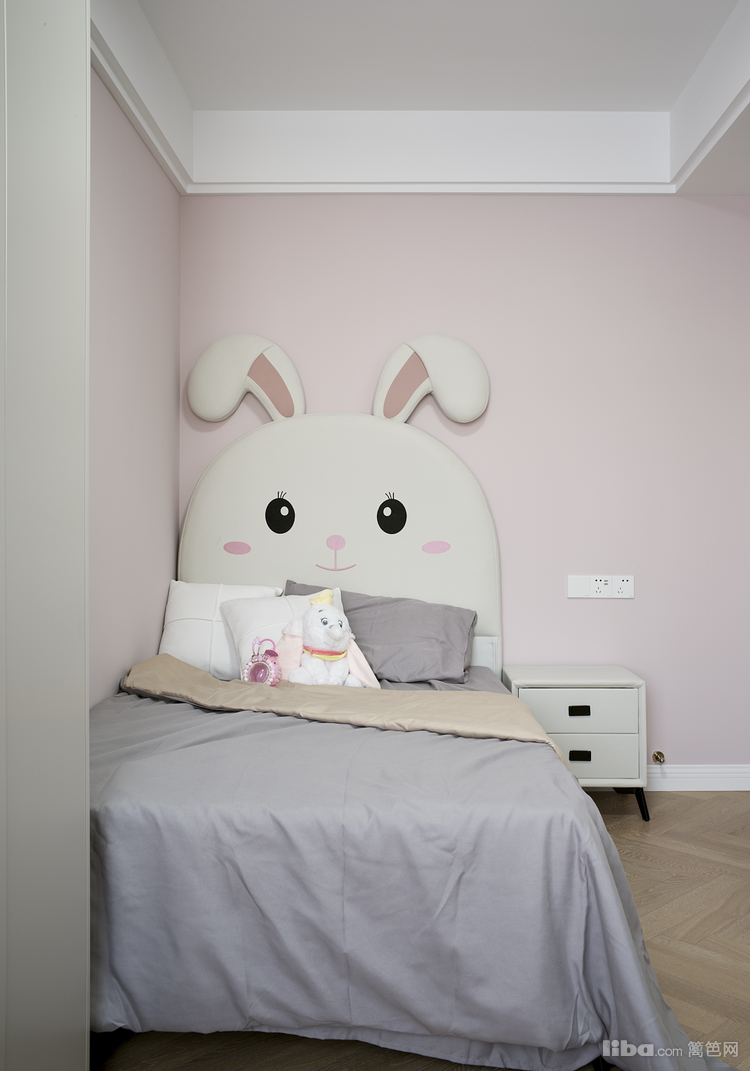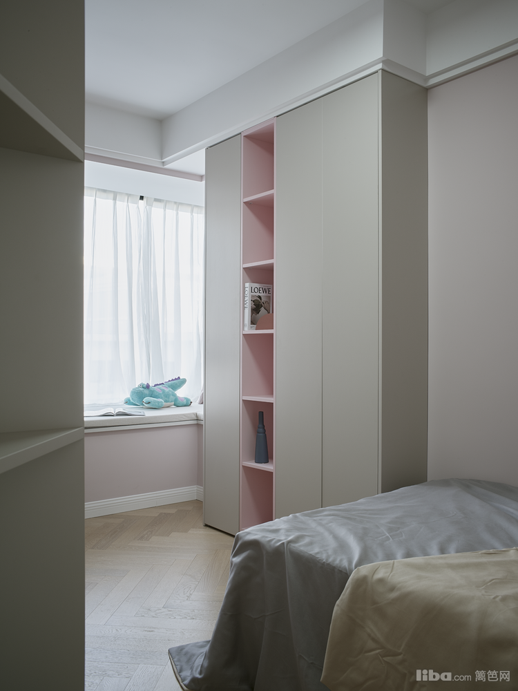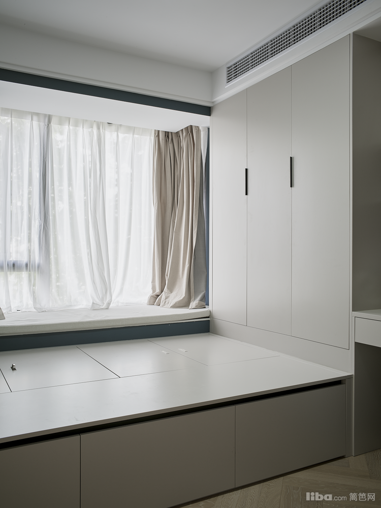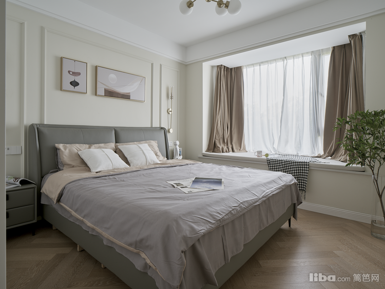 主卧主要是屋主夫妇日常休息的空间,为追求更加细致入微的舒适体验。在设计取色上,结合业主的喜好,低饱和度莫兰迪配色为主,提升空间格调质感同时也满足舒适度。