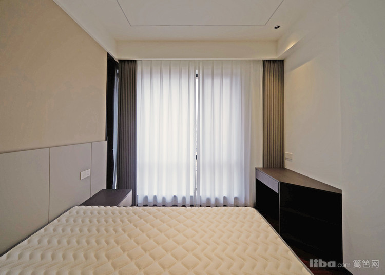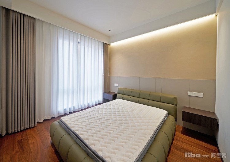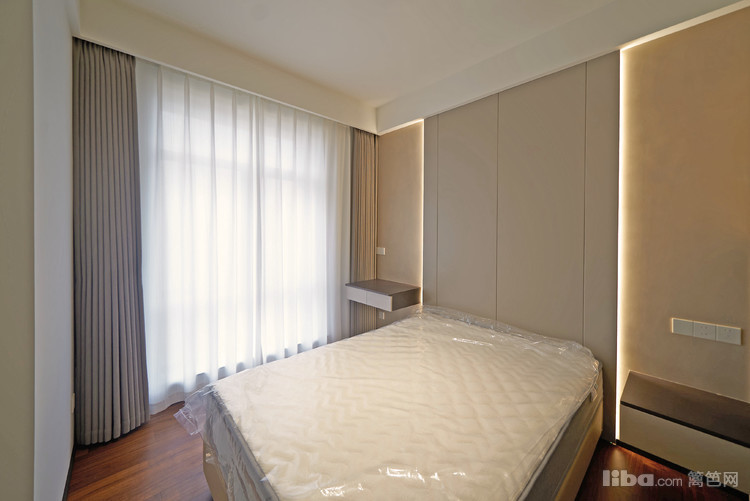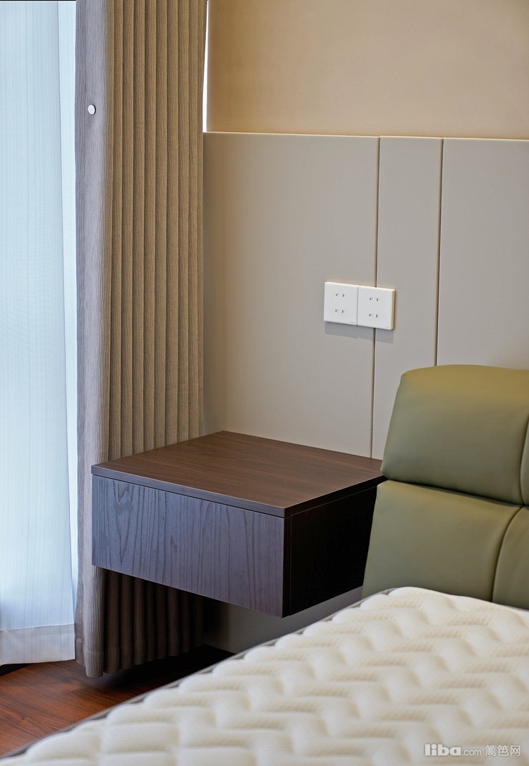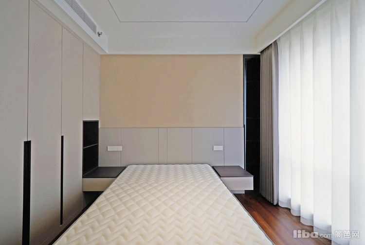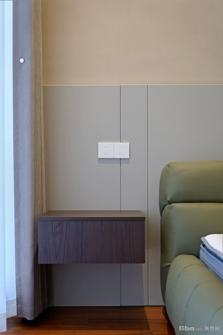(主)卧室向来是主人性格与魅力的集中展演地。在此,从米色墙布至墙面拼贴的装饰、点缀,设计师走入居者关于理想家的设定