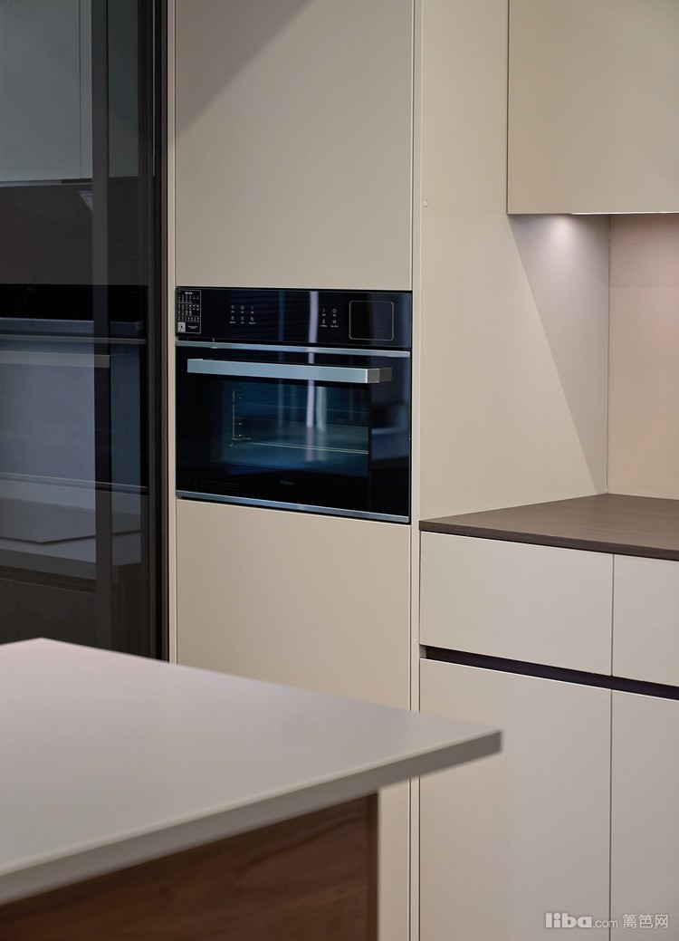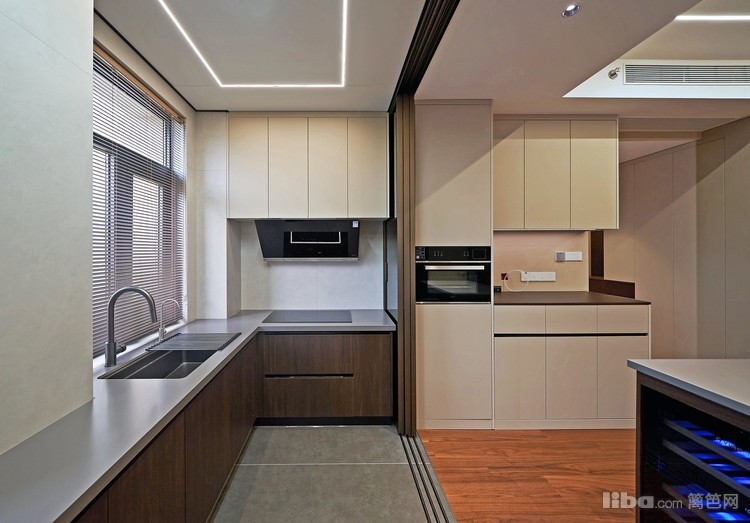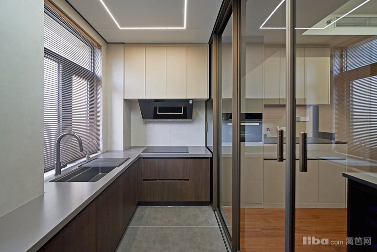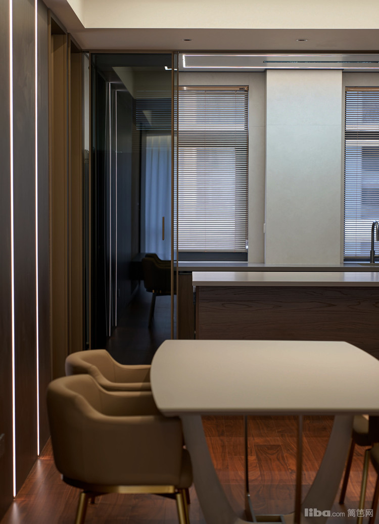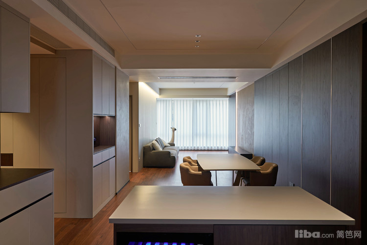 LDK设计客餐厨连接在一起,保持全开放的厨房空间格局的同时,加设移门设计可以挡住厨房的油烟