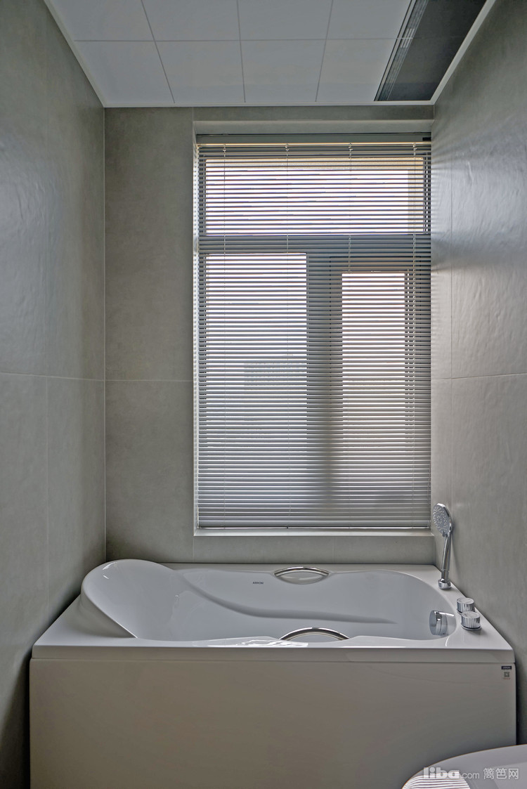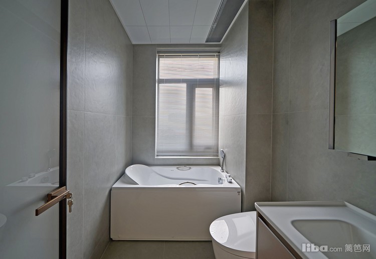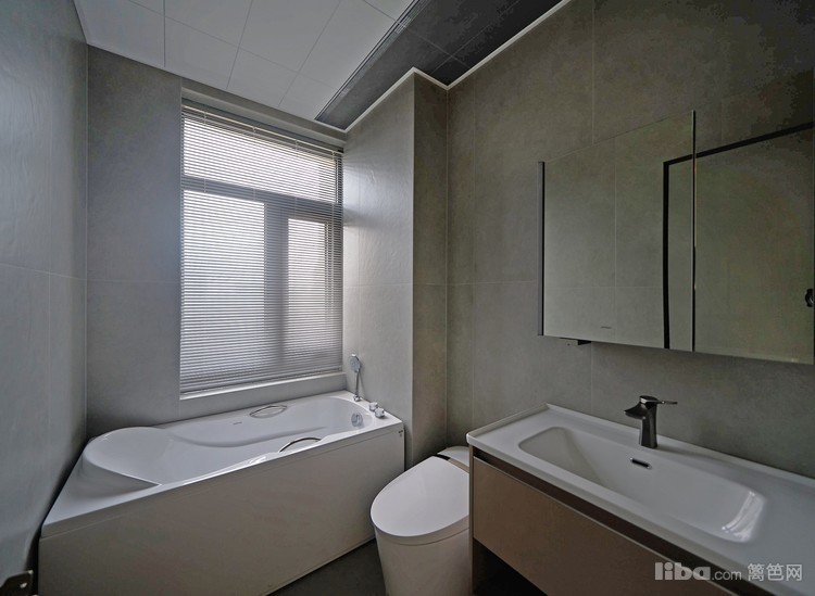 卫生间的整体配色就以灰白为主,为了保持空间整洁,采用了可置物镜柜的设计。