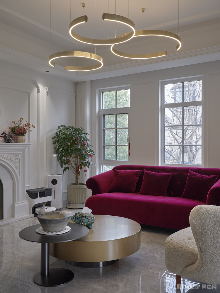 去客厅化设计,大横厅的结构,去掉电视为中心的模式,用围合式布局来布置家具。这样的设计让亲人和朋友之间的交流和互动更为温馨亲密