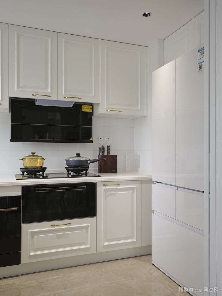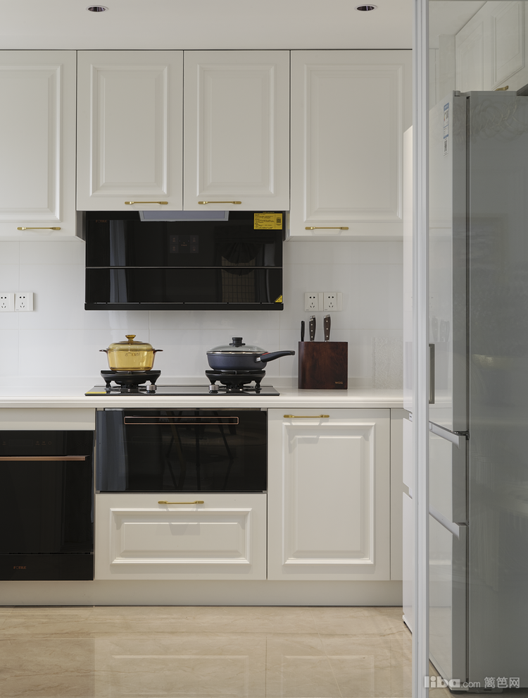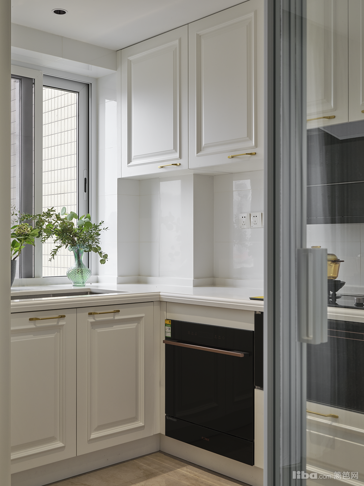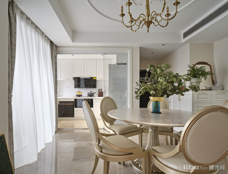 为了保证厨房和餐厅空间相对独立的同时还保持空间感,厨房设计了三联动移门,既可以将厨房的油烟隔绝在里面又在视觉上“分割”不“分隔”
