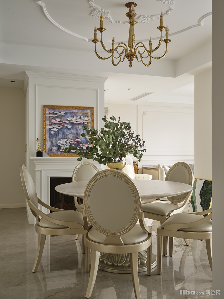 餐厅布局利用1.3米的大圆桌,聚焦成为整个房子的布局的中心点,环形的动线让整个餐厅区域更加柔和且有凝聚力。