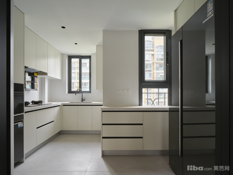 厨房面积.8.8平,拆除原书房空间,扩大厨房面积,做U型布局; 通过区分不同的功能组块(厨房&餐厅&客厅)打掉原来的书房加宽厨房面积,家居动线上更为清晰