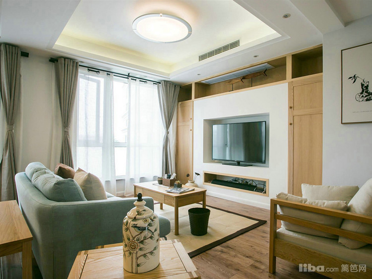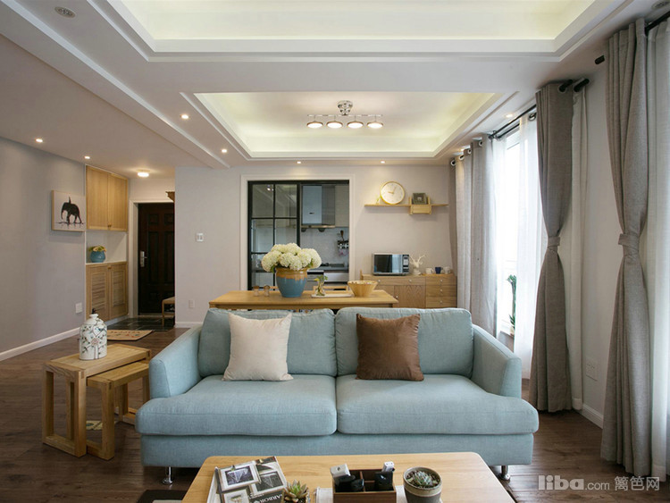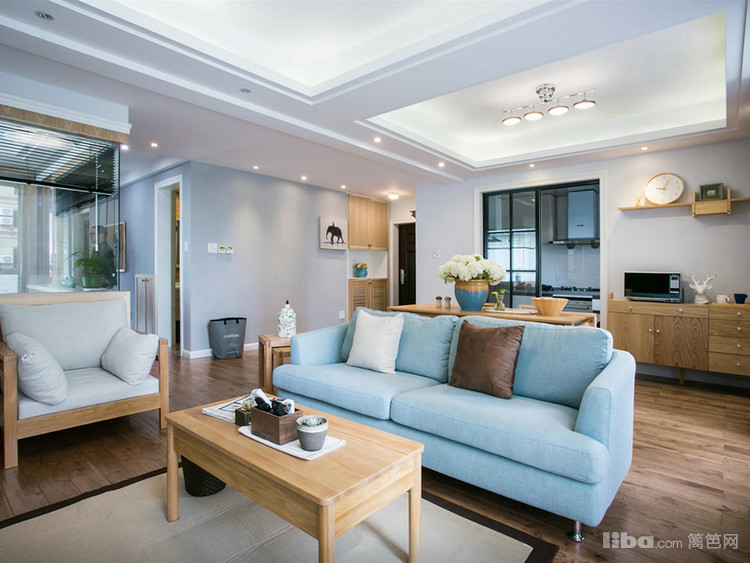 天蓝色的墙面涂料,搭配天蓝色的布艺沙发