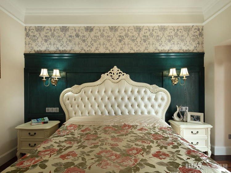 整体床背后用护墙板做装饰