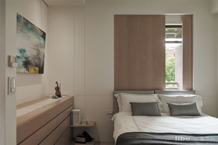 颠覆传统的理念,用木饰面做床头背景的同时,还能有更好的遮光性