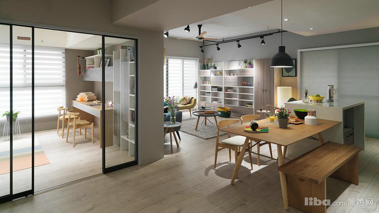 颠覆传统书房的概念,半敞开式,外搭大玻璃移门