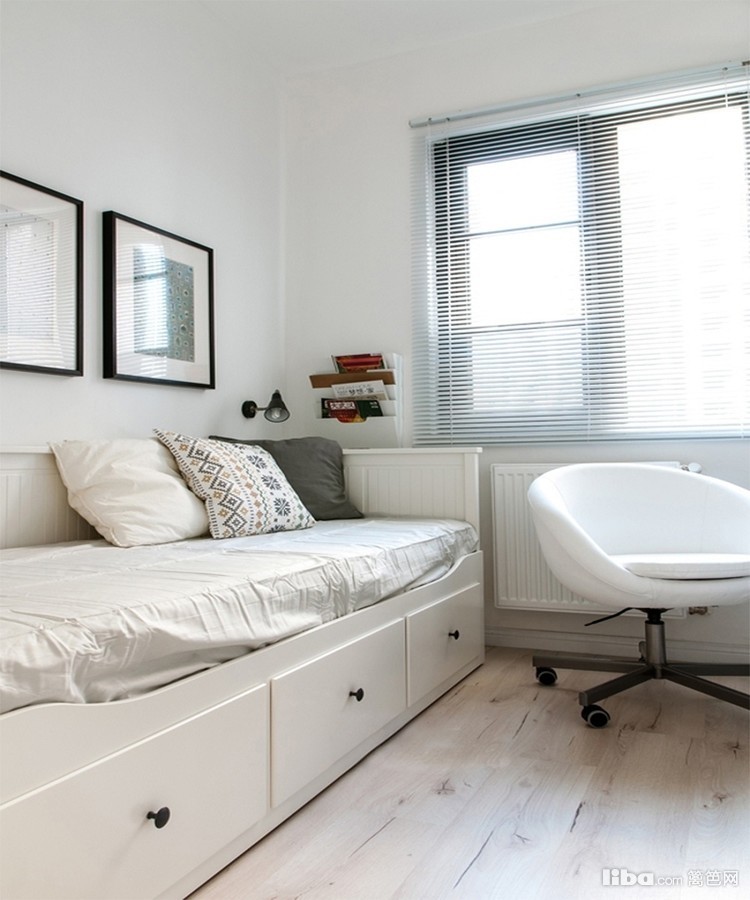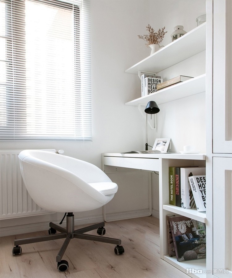 白色百叶帘,白色沙发,白色书桌