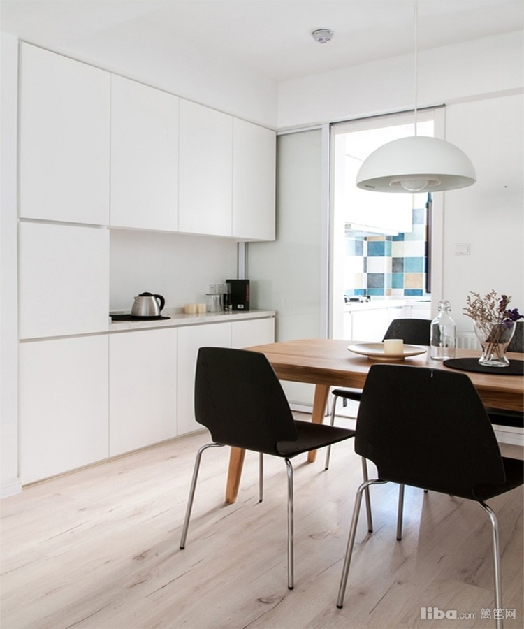 地板和墙面包括装饰的柜子都是以白色为主,在这个基础上多加入一点颜色,做到有跳色的感觉