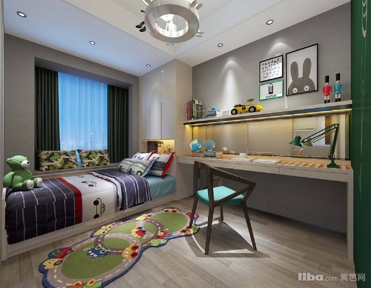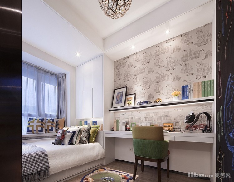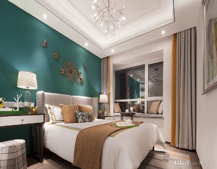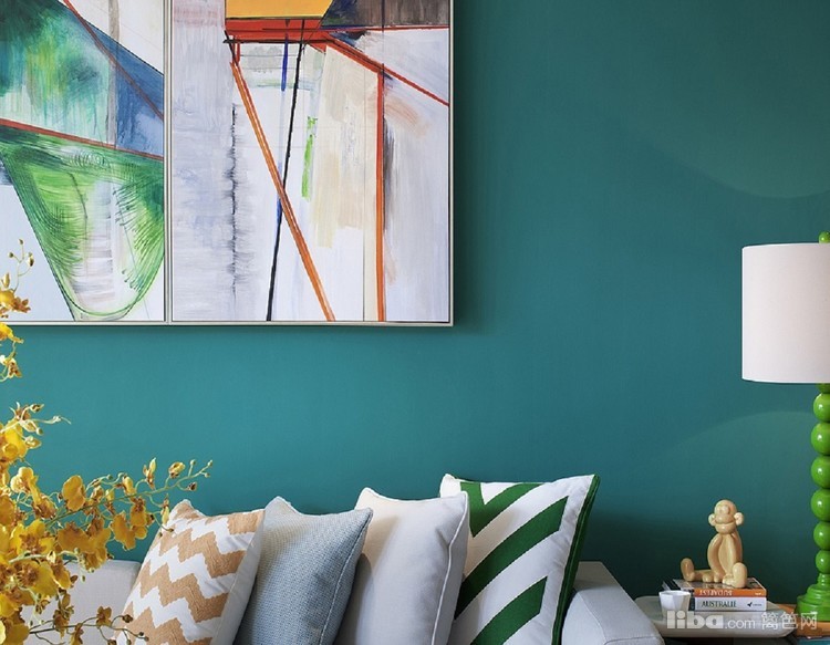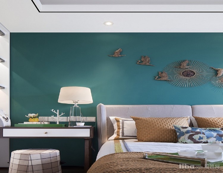 用湖蓝色做沙发背景墙,降低装修成本,同时让家变的更富有色彩。