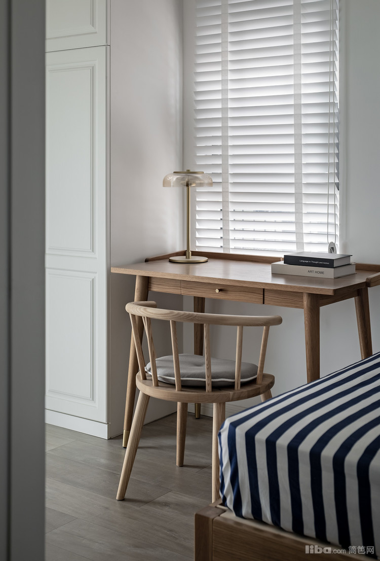 灰色木纹地板整齐排列,纯净素雅的底色与线条纹理相互渗透,将冷色调的简约与高级展现得淋漓尽致。