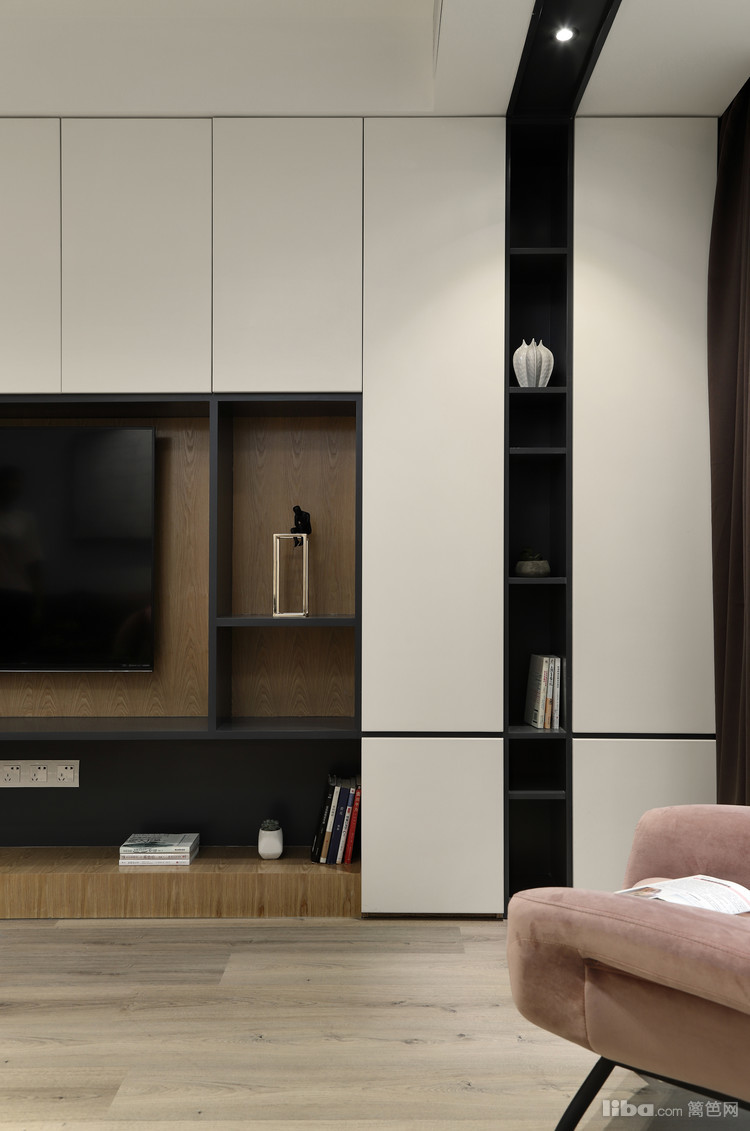 本案以内敛的黑白灰为主,辅以原木色正价温暖感觉,打造出极具生活感的小温馨。